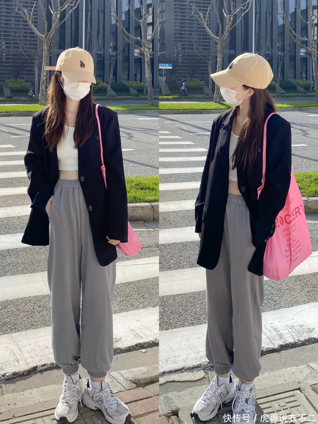 九分裤是最佳选择,它们能自然地露出脚踝,提升整体造型的时尚感和轻盈感。无论是九分小直筒牛仔裤还是九分懒人裤,都能与西服形成完美的搭配。对于宽松裤型,建议选择收口款式,以增强利落感。